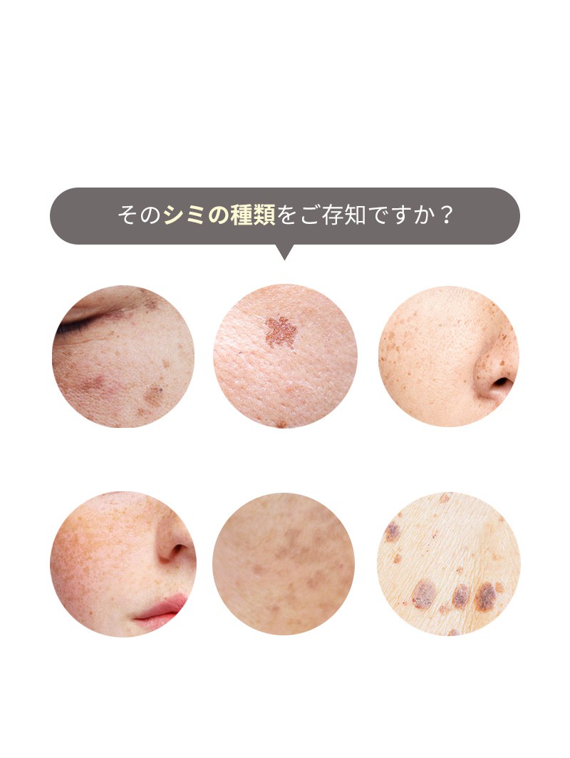 シミには6種類あり、それぞれ原因が異なるため、改善方法も異なる、シミの悩みを解決するためには、シミの種類を判定し、あった対処法を取る必要がある!